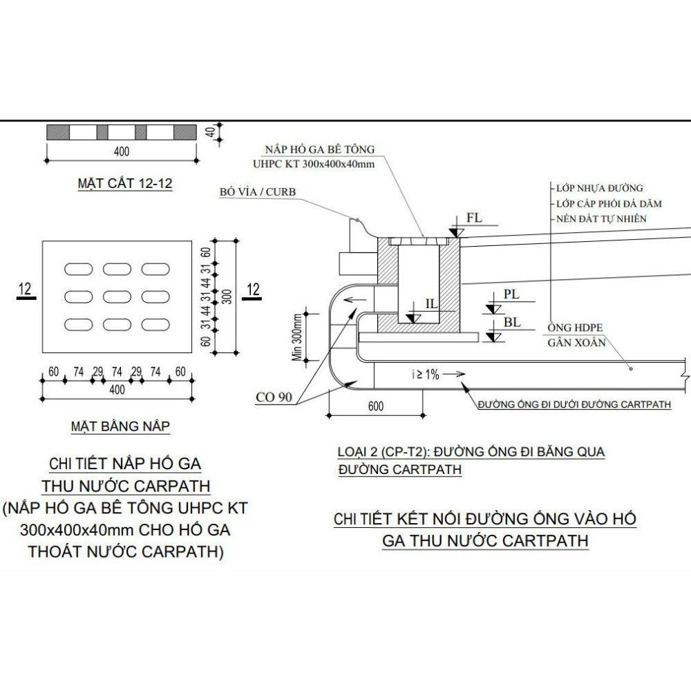 - Đường đô thị, lề đường (Cấp tải C250, D400)