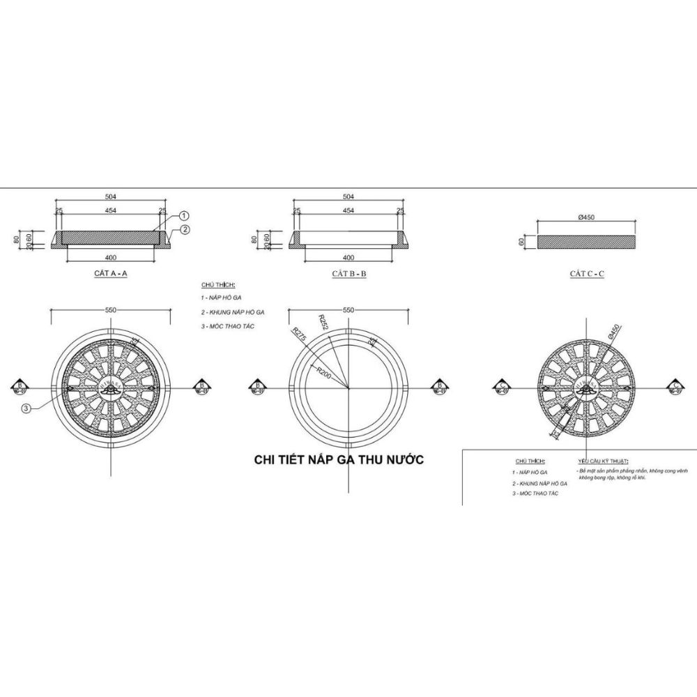 - Hoa văn mặt nắp: Có thể in logo dự án, chữ “THOÁT NƯỚC”, hoặc hoa văn chống trơn lên nắp hố ga.
