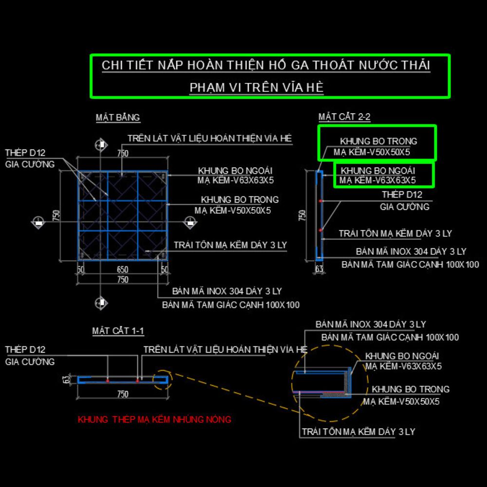 2. BẢN VẼ KỸ THUẬT NẮP HỐ GA INOX 304/201