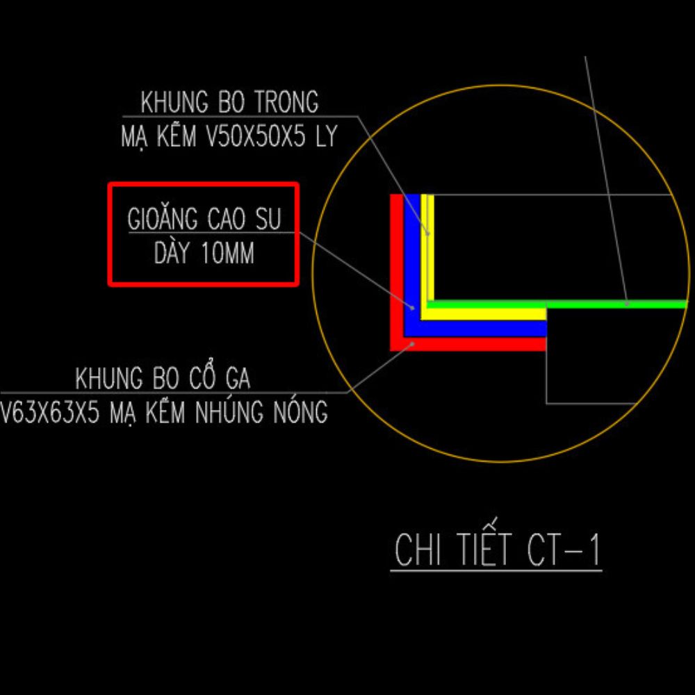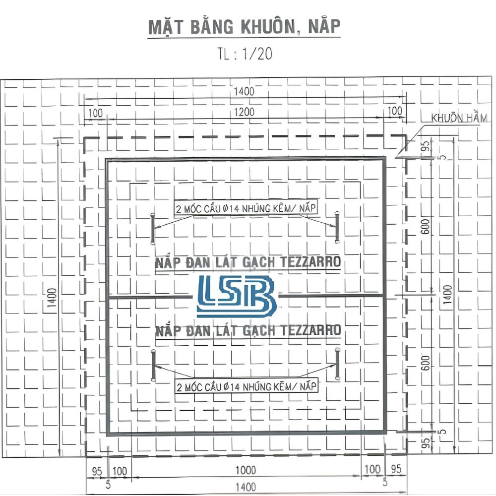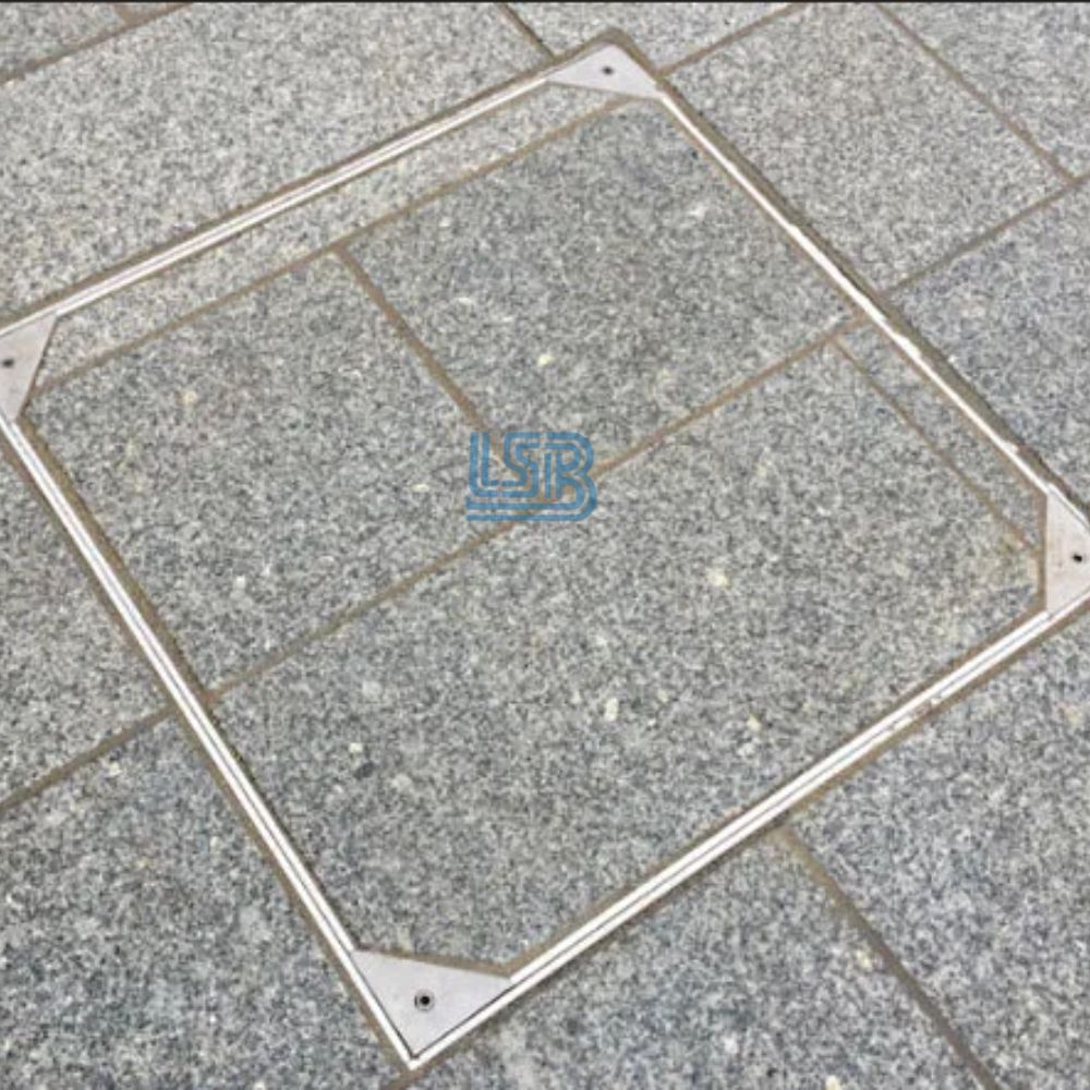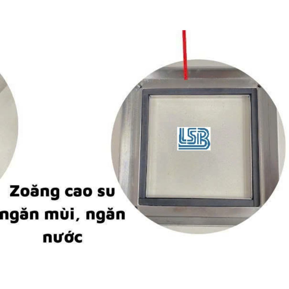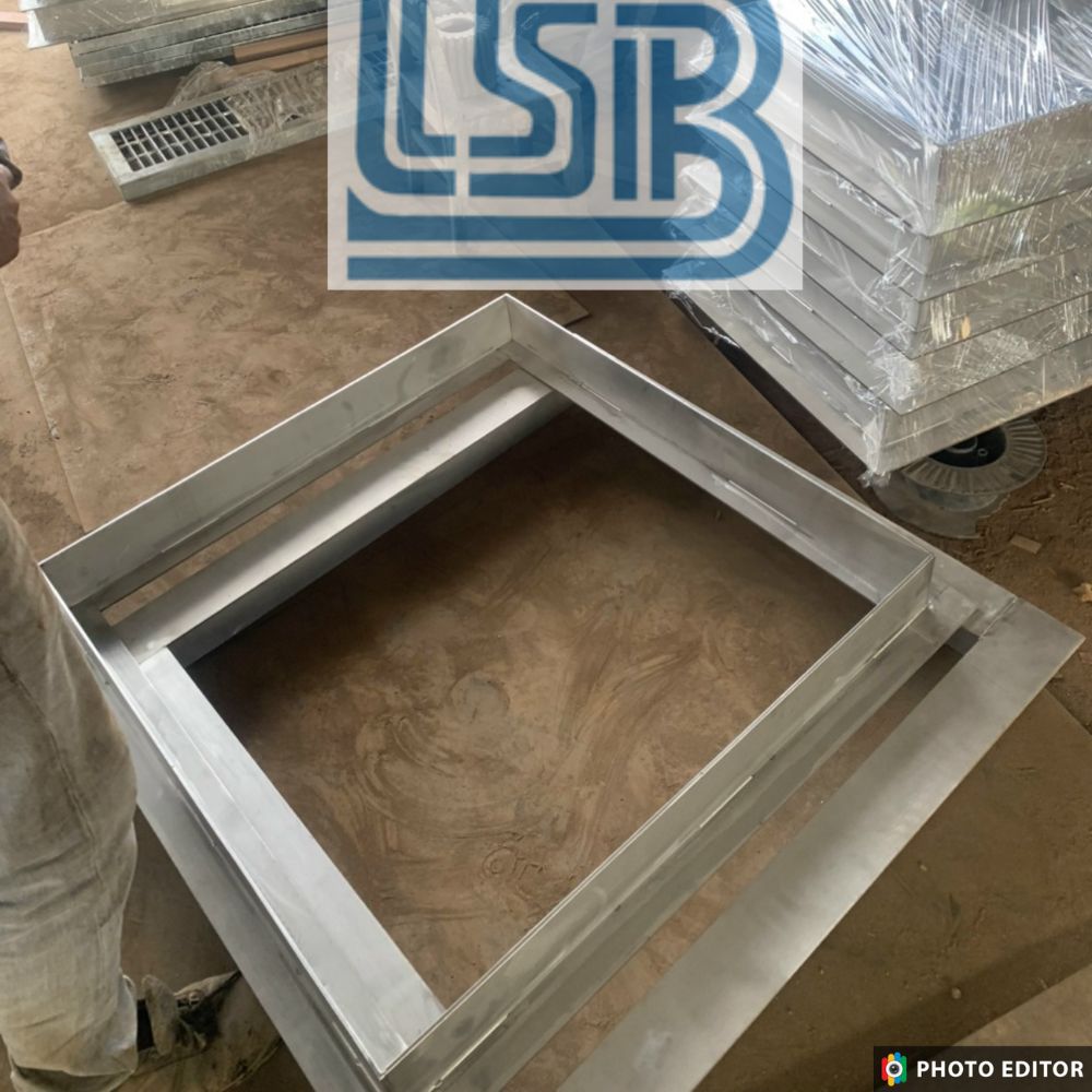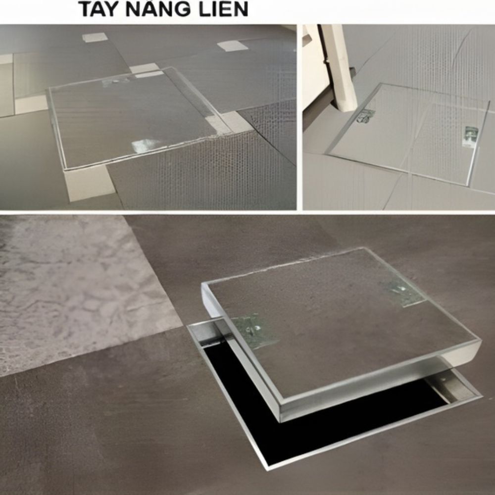 Phần khung đỡ phía dưới: được làm từ inox (SUS304/SUS201) hoặc thép tấm dày dặn, được hàn chắc chắn tạo thành một khung vuông hoặc chữ nhật vững chắc. Khung thường được hàn thêm các thanh móc thép hoặc tai cài để tăng khả năng bám dính, liên kết chặt chẽ vào lớp bê tông nền khi lắp đặt.