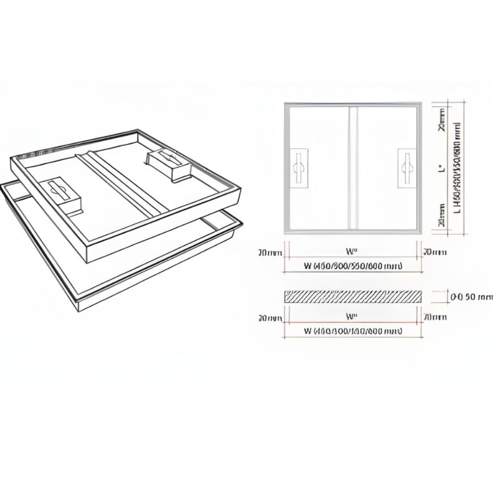 Phần nắp đậy phía trên: Là phần nắp có thể tháo rời, đặt vừa khít vào khung đỡ. Điểm đặc biệt là phần nắp này được thiết kế dạng khay lõm xuống (mặt âm). Nhỏ hơn kích thước khung ngoài để đảm bảo đặt lọt lòng khung.